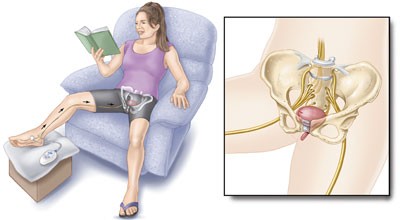 Percutaneous Tibial Nerve Stimuation (PTNS) is a low-risk, non-surgical treatment. PTNS works by indirectly providing electrical stimulation to the nerves responsible for bladder and pelvic floor function. During PTNS treatment, the patient’s foot is comfortably elevated and supported. Also during treatment, a slim needle electrode is placed near the nerve at the ankle known as the tibial nerve. A device is connected to the electrode and sends mild electrical pulses to the tibial nerve. These impulses travel to the sacral nerve plexus, the group of nerves at the base of the spine responsible for bladder function.